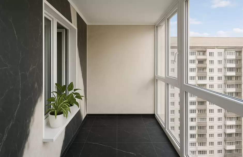 Комплексная отделка тёплого балкона гибким мрамором с дополнительным утеплением и полной подготовкой стен. В проект вошло выравнивание основания, нанесение грунта глубокого проникновения, монтаж теплоизоляции и декоративная облицовка гибким мрамором с плавным совмещением рисунка.