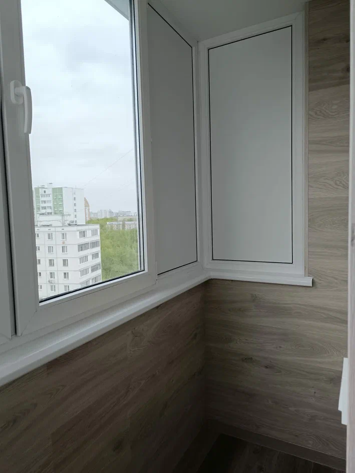 Выполнен капитальный ремонт Г-образной лоджии в жилом комплексе по адресу: Барвихинская улица, дом 8 корпус 2, серия дома П-3. Основные работы: Отделка стен: стены облицованы качественным кварцвинилом, устойчивым к повреждениям и влаге.