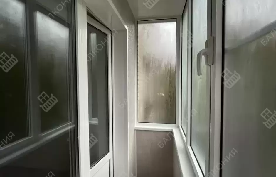Отделка и остекление П-образного балкона без утепления, в кирпичном 5-ти этажном доме 1960 года постройки: отделка стен выполнена пластиковыми панелями, полы ламинат, алюминиевые окна PROVEDAL. Потолок натяжной-белый глянец. Материал предоставлялся компанией «Балкония» согласно пожеланиям заказчика.