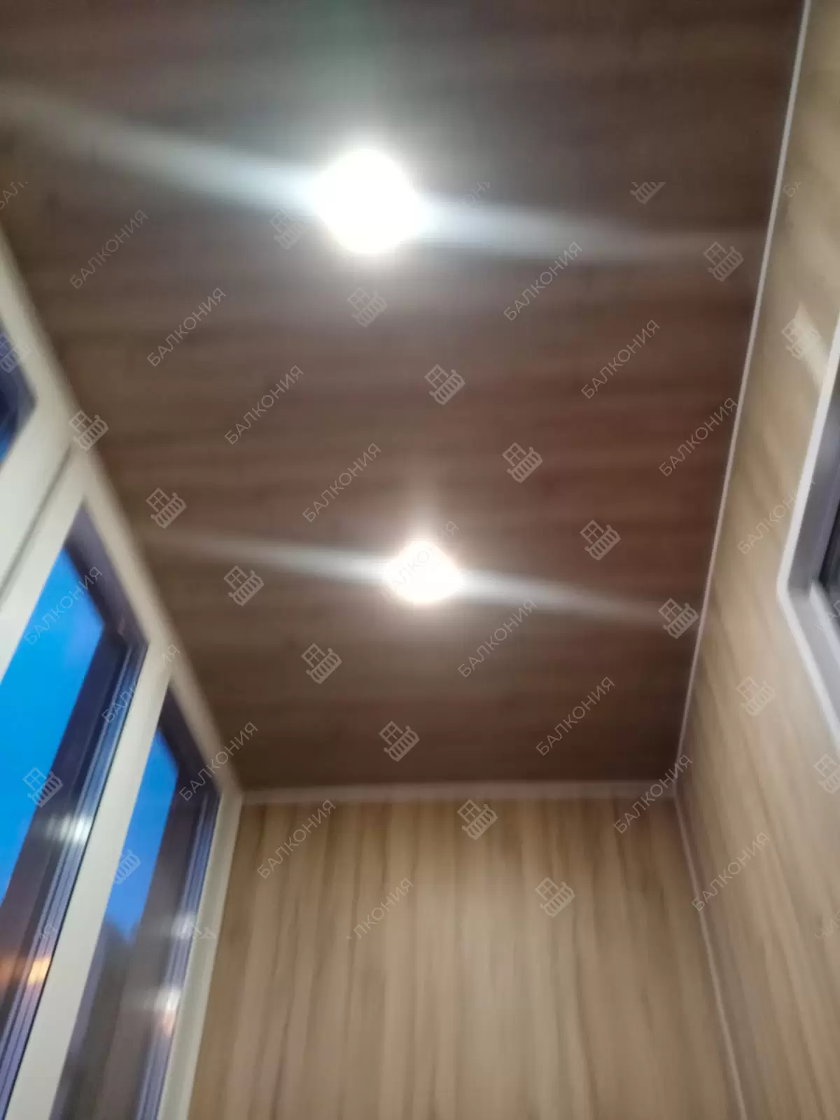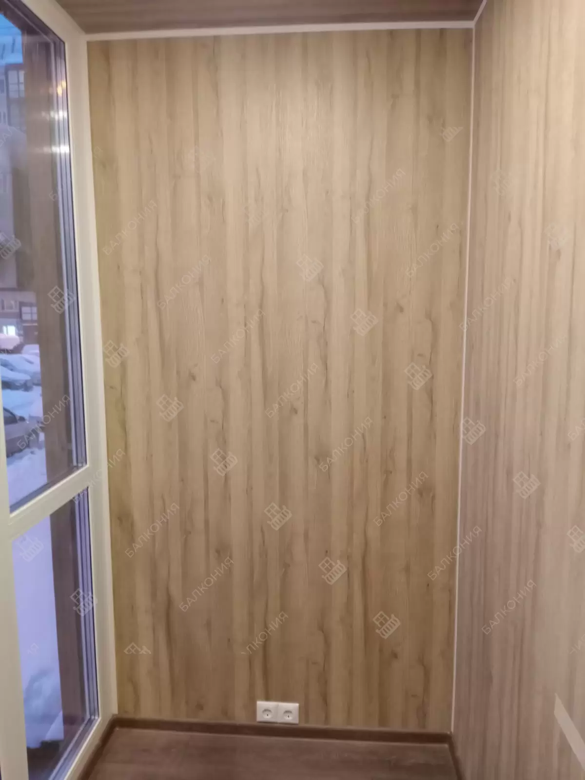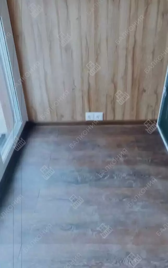 Реализованы работы по отделке балкона под ключ с утеплением, в многоквартирном доме. Сделано остекление балкона панорамными окнами, установлен балконный блок. Все окна выполнены из профиля Rehau Grazio 70 с энергосбережением. Сделано утепление. Отделка стен и пола выполнена ламинатом, потолок панели ПВХ. Выведено на балкон и разведено электричество. Установлены светильники. Материал предоставлялся компанией «Балкония» согласно пожеланиям заказчика.